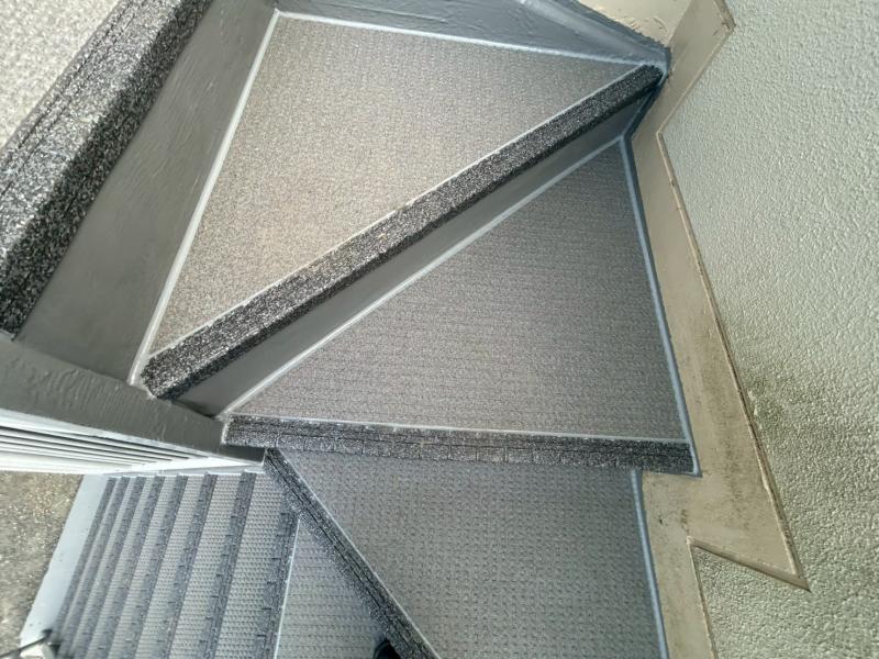 周南市で外階段の補修工事、長尺シートとウレタン防水による補修