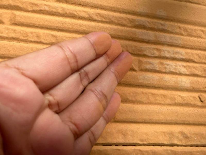 外壁を手で触ってみると、指に外壁と同じ色の粉が付着しました。