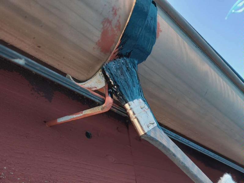 雨樋を固定する金具はローラーでは塗りにくいので、ハケを使って一つ一つ丁寧に塗装していきます。